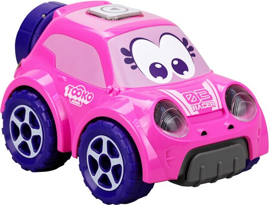 TOOKO - Mijn roze "follow-me" afstandsbedieningsauto - Ontdek de roze "follow-me" afstandsbedieningsauto en de bijbehorende afstandsbediening in de vorm van een wiel met stuurwielaccessoire - Uitgerust met "follow-me"-technologie volgt deze auto uw kind op al zijn avonturen - Naast zijn superschattige uiterlijk detecteert hij obstakels en heeft hij geluids- en lichteffecten - Vanaf 2 jaar - Werkt op 3 "AA"-batterijen (voertuig) en 2 "AAA"-batterijen (afstandsbediening), niet inbegrepen.