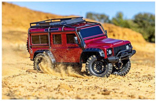 Prachtige afstandsbestuurbare Traxxas Land Rover Defender. Zeer waarheidsgetrouw nagemaakt, met prachtige details. Volledig afstandsbestuurbaar, op de accu en lader na, is alle electronica inbegrepen.