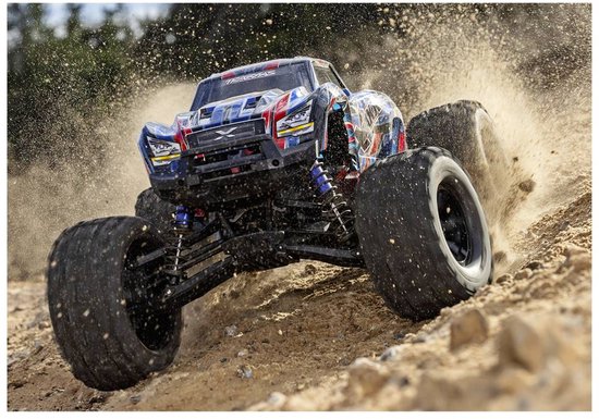 Alles aan de Traxxas X-Maxx monster truck is groot. En dat heeft een voordeel: het overwinnen van obstakels of andere oneffenheden is geen enkel probleem voor dit voertuig. Hoe moeilijk het terrein ook is, met deze monster truck snij je er moeiteloos doorheen. Dankzij de grote Mammoth banden en een uitstekende wegligging ben je de concurrentie de baas en overwin je ieder terrein.