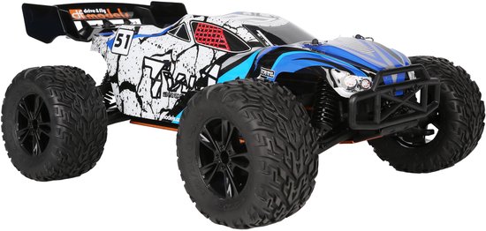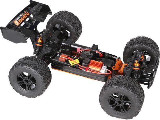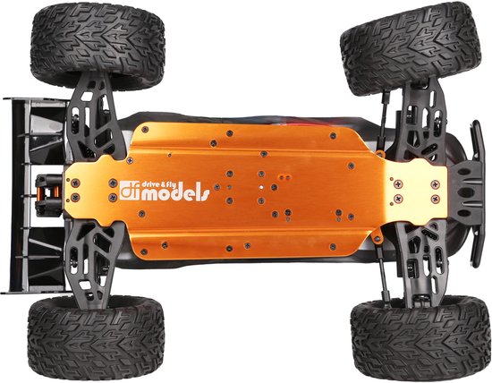 DF Models 3195 TW-1 Truggy 5.1 brushed 1:10XL - Ready to Run DF Models 2025. Eerste uitlevering 05-2025.Sterk, sterker, XL-Line 5.1 ... opnieuw verbeterd!De 5.1-modellen zijn gebaseerd op de beproefde 1:10XL 5-modellen, maar zijn voorzien van enkele extra onderdelen en aanpassingen. De modellen zijn nu uitgerust met een middendifferentieel. Dit verdeelt het vermogen perfect over de twee assen. Een aluminium steun voor het voorste asgedeelte zorgt voor een grotere stijfheid van het chassis. Met de RACE X3 3-kanaals afstandsbediening is nu een dual-rate-functie voor het gaspedaal mogelijk. Met een schakelaar kan 100, 75 of 50 % maximaal vermogen bij vol gas worden geselecteerd. Het metalen chassis, XL-oliedrukdempers met aluminium onderdelen, aluminium stuurhendels, stalen CVD-koppelingen en kogellagers blijven natuurlijk standaardkenmerken van de 1:10XL-modellen in de 5.1-versie. De TW-1 BR 5.1 wordt aangedreven door een krachtige 550 geborstelde motor, de gloednieuwe, hoogwaardige DF Models DF-1060 snelheidsregelaar met 60 ampère output en een 7,2 volt NiMH-accu, waardoor het model kan accelereren tot ongeveer 40 km/u. De DF-1000D 10 kg stuurservo met XXL metalen versnellingsbak levert voldoende vermogen in elke situatie.Technische gegevens Schaal: 1:10XL RTR Aandrijving: 4WD geborsteld Lengte: 500 mm Breedte: 340 mm Hoogte: 190 mm Wielbasis: 303 mm Banden: 130x65 mm Leveringsomvang: RC Truggy RTR 2,4 GHz afstandsbediening NiMH-accu 7,2 Volt - 3500 mAh USB-oplaadkabel Handleiding Benodigde accessoires (niet meegeleverd):4x AA-batterijen (gebruik geen oplaadbare batterijen)