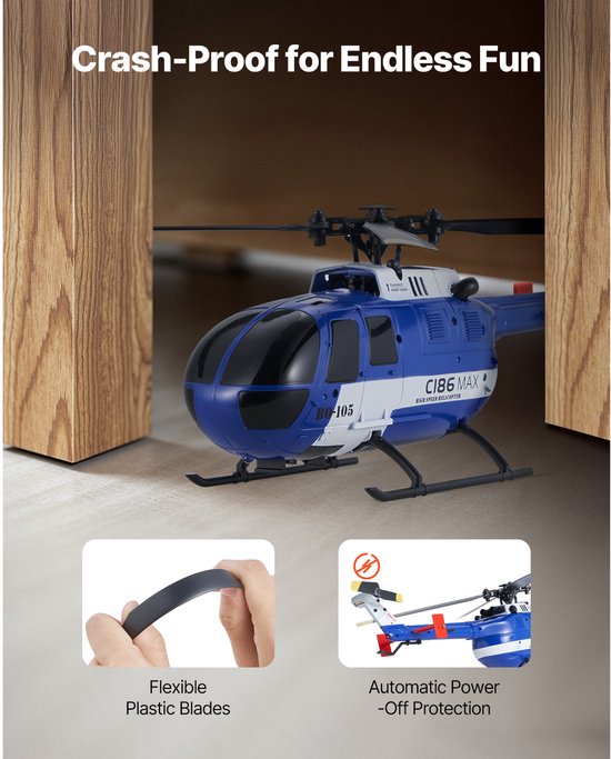 - Veilig en duurzaam: Gemaakt van hoogwaardige, schokbestendige materialen en flexibele ABS-propellers, beschermt deze speelgoedhelikopter de interne componenten bij een crash. De automatische uitschakelfunctie voorkomt schade en verlengt de levensduur voor langere speeltijd.