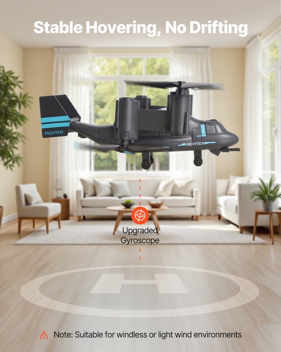 - Veilig en duurzaam: de RC-vliegtuigbehuizing, gemaakt van PVC en legeringen, is slagvast. De flexibele ABS-propellers zijn robuust en buigvast. De automatische uitschakelfunctie beschermt de interne componenten bij een crash en verlengt zo de levensduur.