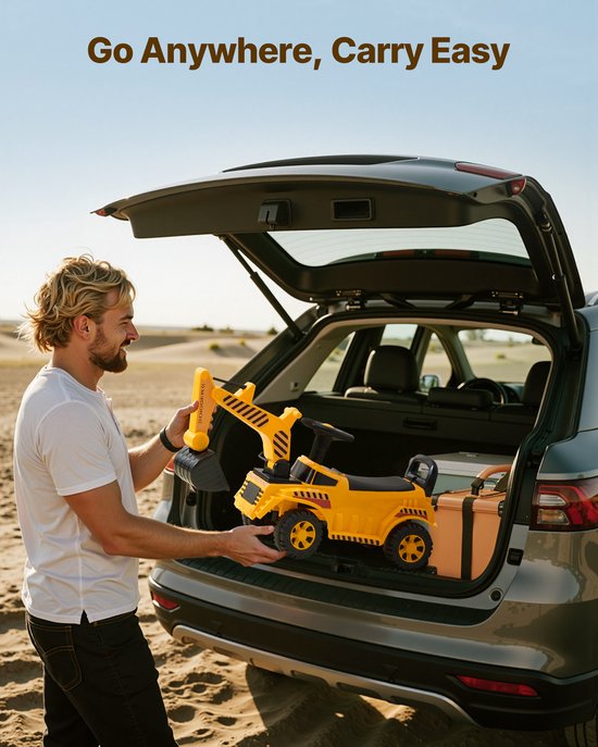 - Minikraanmachinist: Kinderen kunnen de graafmachinearm omhoog en omlaag brengen met de bedieningshendel, sturen met het stuur en genieten van realistische "chuck-chuck"-geluiden. Uitgerust met een veiligheidshelm is onze loopauto de ideale manier om op een speelse manier de hand-oogcoördinatie te ontwikkelen.