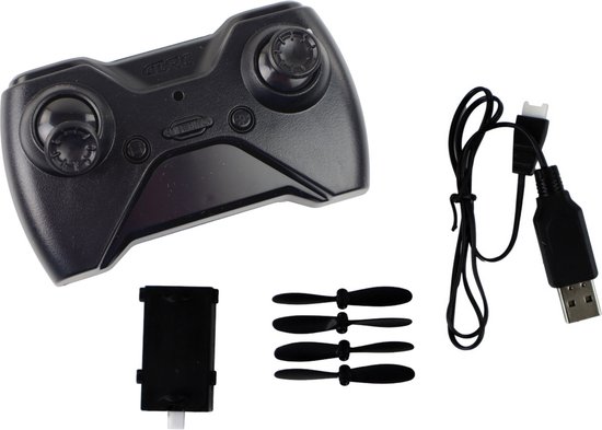 - Inclusief vier vervangbare propellers en oplaadkabel voor de batterij