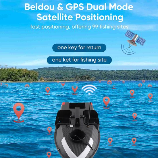 Visboot met 99 aasplekken, bereik van 500 m, afstandsbediening met GPS en 7-kleurige ledverlichting