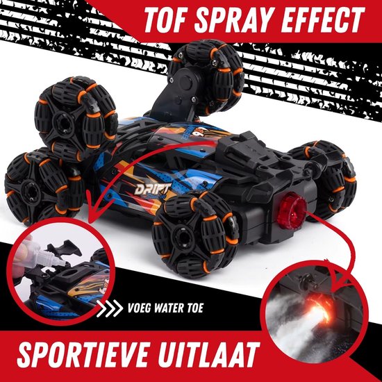 Ben jij klaar voor stunts zonder grenzen? De Vroemy TurboTwister brengt actie, licht en rook samen in één epische ervaring. Met zes spinwielen, een coole sprayfunctie en felle LED-verlichting is dit geen gewone bestuurbare auto – dit is een echte afstandsbestuurbare stuntmachine die alles durft.
