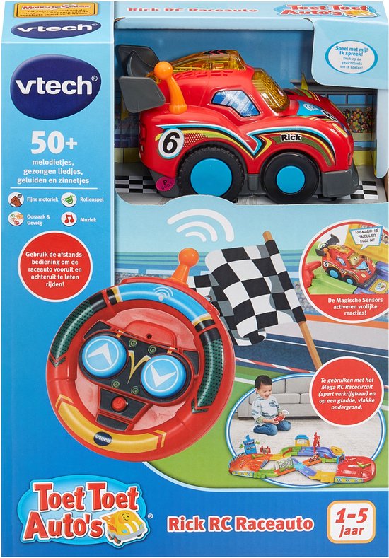 VTech speelgoedauto Rick RC Raceauto - interactief kinderspeelgoedMet de VTech speelgoedauto Rick RC Raceauto beleef je eindeloos veel raceplezier! Deze kleurrijke raceauto is speciaal ontworpen voor jonge coureurs en zorgt voor spannende avonturen op de speelbaan. Dankzij de vrolijke kleuren en het stevige ontwerp is Rick RC Raceauto perfect voor kleine handjes en nieuwsgierige kinderen.De raceauto stimuleert de fantasie en motoriek van kinderen, terwijl ze hun eigen races organiseren en Rick over de vloer laten scheuren. Het speelgoed is gemaakt van duurzaam materiaal en geschikt voor jongens en meisjes vanaf 3 jaar. Laat de race beginnen en ontdek samen met Rick RC Raceauto de wereld van snelheid en plezier!Extra informatieInteractieve raceauto voor kinderen vanaf 3 jaarStimuleert fantasie en motorische vaardighedenGemaakt van stevig en duurzaam materiaalKleurrijk ontwerp voor extra speelplezier.