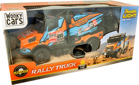 De truck is uitgerust met ingebouwde verlichting (batterijen niet inbegrepen), wat zorgt voor een extra coole uitstraling en zichtbaarheid in het donker. Het duurzame ontwerp maakt deze rally truck perfect voor intensief gebruik, zowel binnen als buiten.