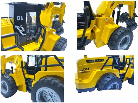 Op schaal van 1:50 is deze speelgoed werkvoertuig gebaseerd op een echte graafmachine. Het bouwvoertuig wordt bestuurd door een 27 MHz afstandsbediening, die bij de set is inbegrepen. De afstandsbediening heeft vier actieve knoppen, twee aan de linkerkant, waarmee je het voertuig naar voren en naar achteren bewegen, en twee aan de rechterkant waarmee je van rechts naar links en terug kan draaien + één knop in het midden voor het besturen van de kraan.