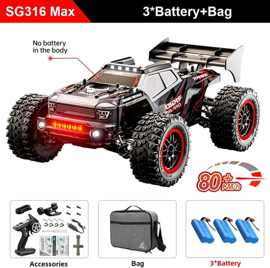Ervaar ultieme snelheid, grip en all-terrain prestaties met deze hoogwaardige SG316 MAX 3B CB RC auto. Bestel nu en race als een echte off-road professional!